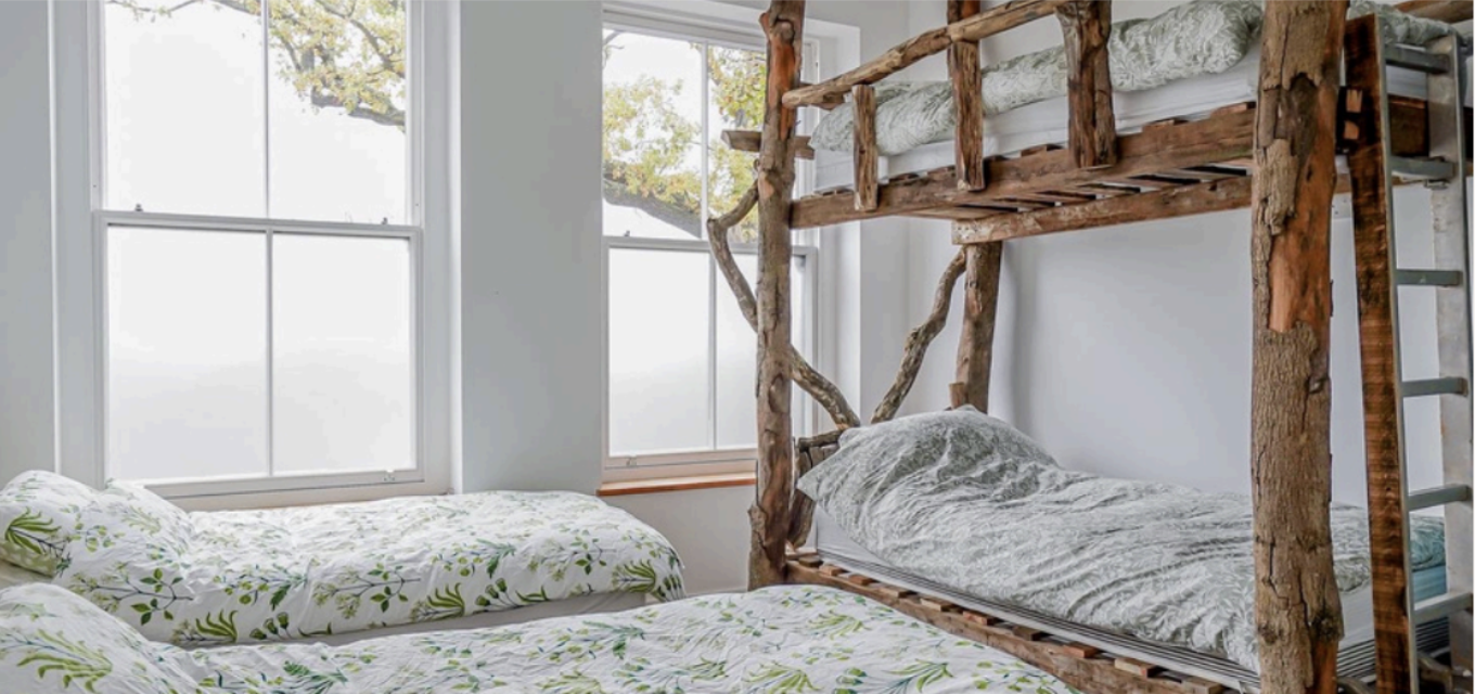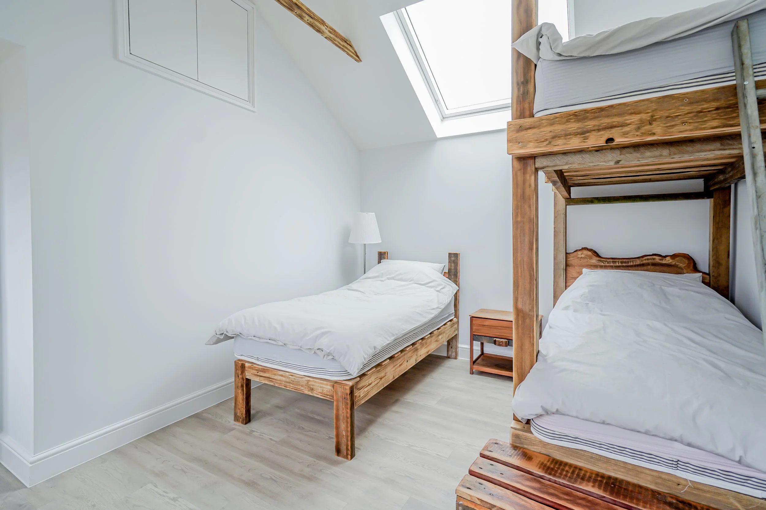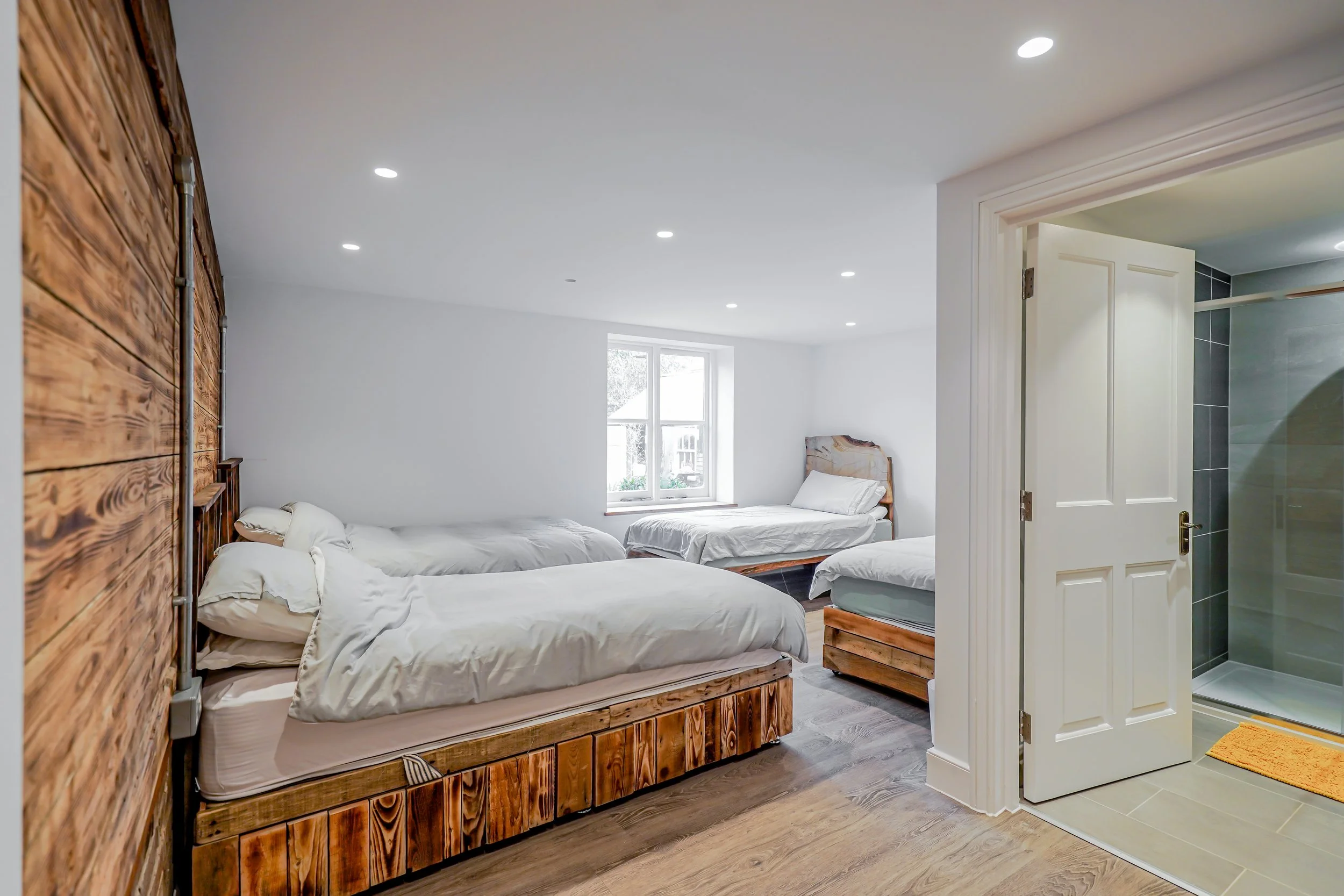 2 single beds, 1 large bunk bed, with en-suite bathroom (shared room of 4)